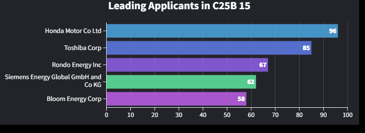 Las señales son claras. Los datos de patentes muestran que las tecnologías de mayor crecimiento no están en nuevas aplicaciones de software, sino en procesos electroquímicos, electrólisis y materiales asociados a la conversión energética. El código de patente C25B 1/5, que se refiere a la operación y mantenimiento de celdas de electrólisis, ha sido la tecnología de más rápido crecimiento por segundo año consecutivo, con una tasa del 23,6%.